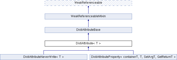DistiAttributeBase WeakReferenceableMixin WeakReferenceable DistiAttributeNeverWrite< T > DistiAttributeProperty< containerT, T, SetArgT, GetReturnT >