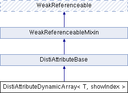 Inheritance diagram for DistiAttributeDynamicArray< T, showIndex >: