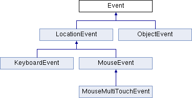 | enum | EventSubtypeEnum { MOUSE_DOWN = 0 , MOUSE_UP , MOUSE_MOVE , MOUSE_DRAG , MOUSE_LEAVE , MOUSE_ENTER , MOUSE_WHEEL_MINUS , MOUSE_WHEEL_PLUS } |